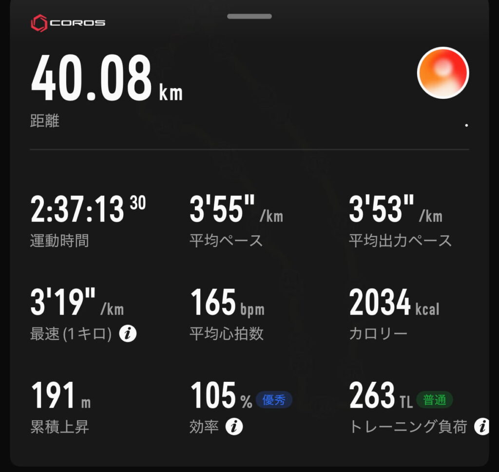 1月17日 後半戦1回目の距離走 練習メニュー40km走設定:30km(4’00/km)+10km(3’15/km) 結果 補給食はこちら 所感意外とラスト上がらなかった。補給食を増やした影響か、腹痛に襲われ、2度のトイレ離脱 Vlog