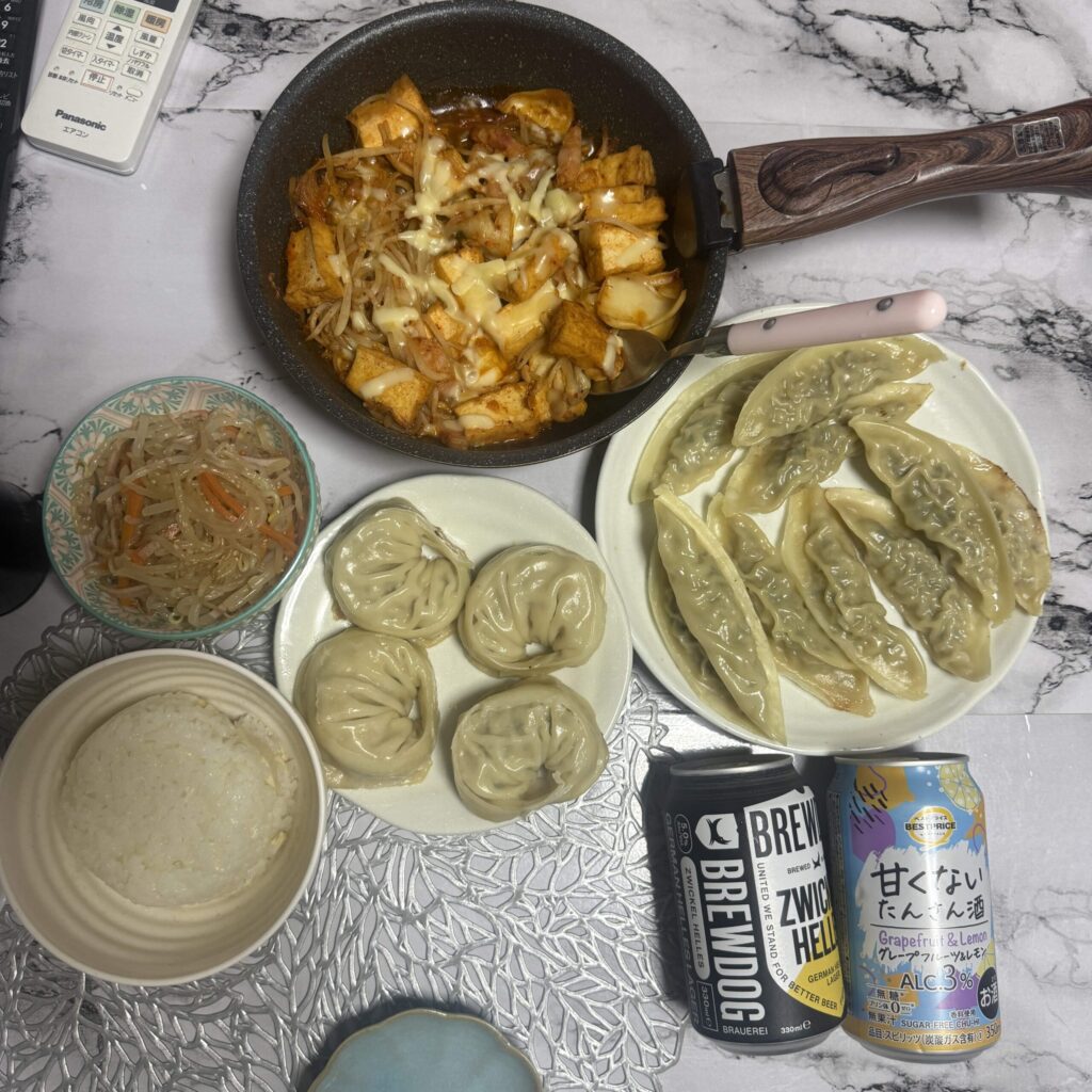 餃子パーティ。お米に餃子は最高に合う。
