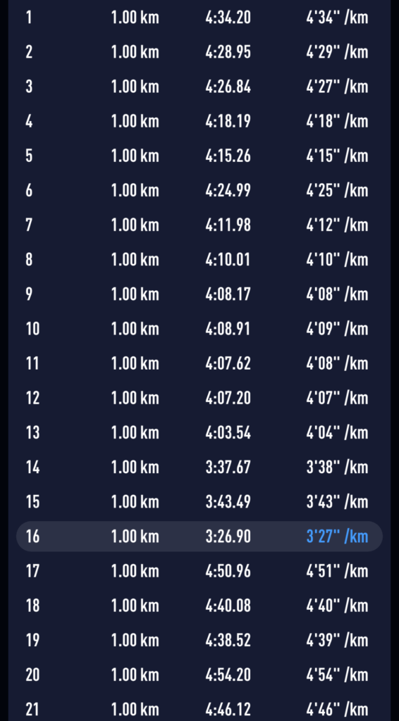 んー…あまりスピード上がらず。まぁ、暗くなったしまったということもあるかもだが、スピードの出力の体感10/km遅かった。