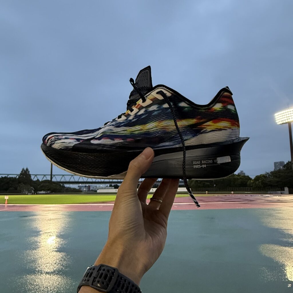 今月はトレーニングの中で今シーズンの勝負シューズを選定している。ということで、今回はヴェイパーフライ4を着用。