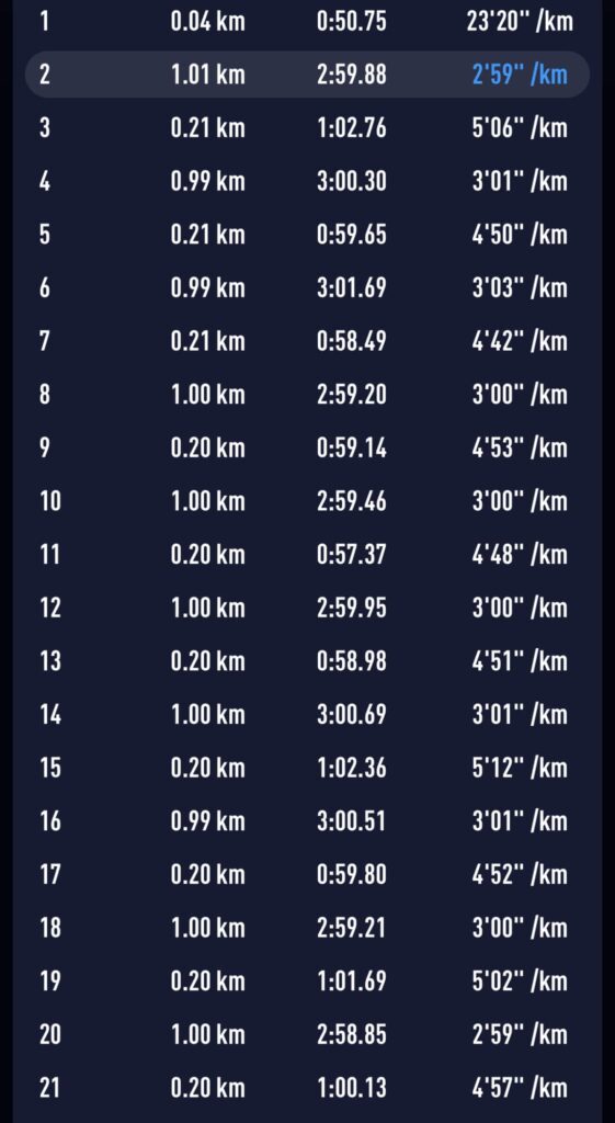 今月はLT(速)刺激をメインに実施してきた。今回で3回目。これをこなして、いよいよマラソンペースに繋げていきたい。