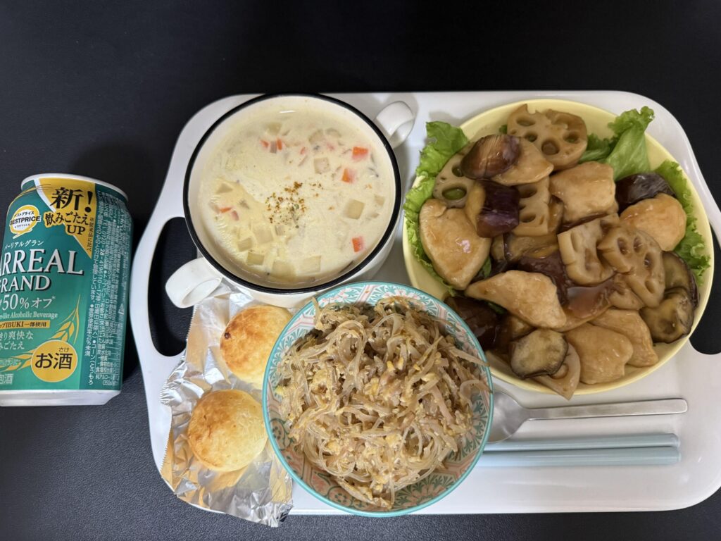 夕方のトレーニングに備えて、しっかりめに食べておく。