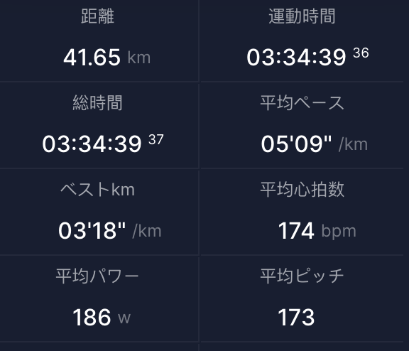 撮影伴走としての出走のため完走記録はない。スタートも押し忘れたので、gps上ではマラソン走ってないことに笑