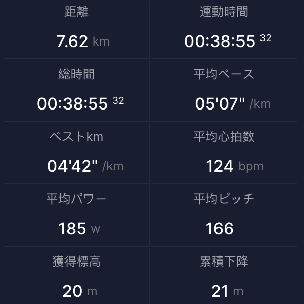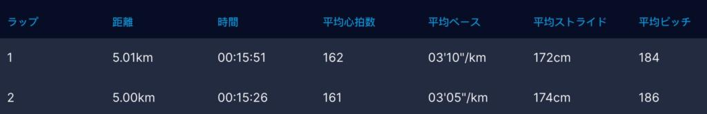 マラソンペースくらいで走り進める。ペースをある程度あげても心拍数が160前半なのはグッド!調子の良さは維持!