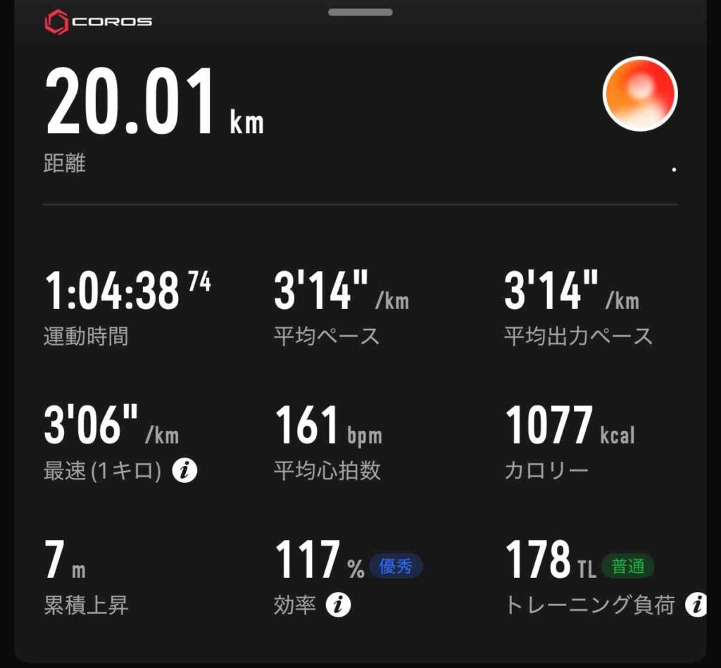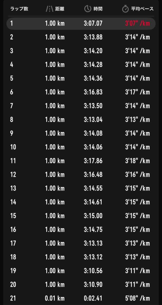 2月11日 東京マラソン前最大の山場のトレーニング 20kmマラソンペース走 3’10/kmくらいで走れたら◎だが、無理に設定を追いすぎないようにする。あくまでペースは結果だ アップ 結果 ラップ あくまで、マラソンを走る感覚で!ってイメージで走り進めた。 その感覚で走ると3’14~15/kmくらいで落ち着いていた印象。あと1~2秒欲しかったが、あくまで全力にならない程度に。 シューズ 夜 夜はジェミニ練習会でペーサー 8000m