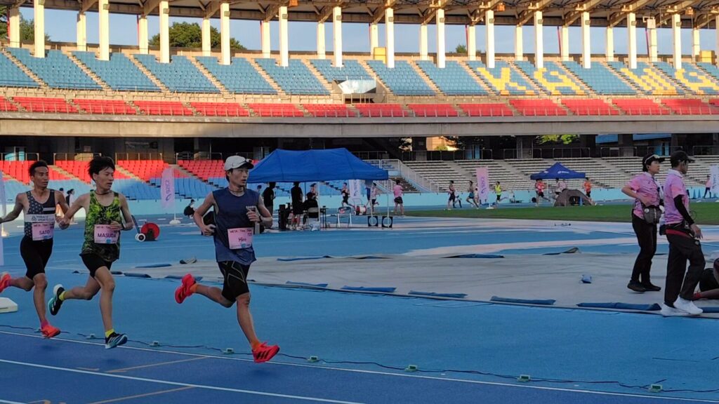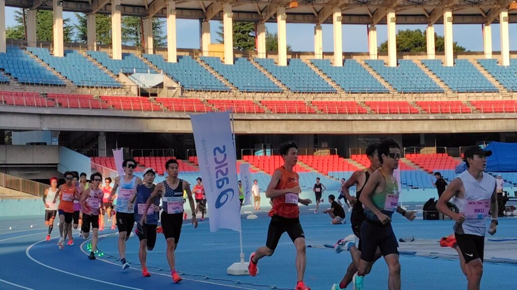 今回は、ウェアの忘れ物や競技場への入場の複雑さ、撮影へのこだわりが積み重なり、結果としてストレッチの時間は5分、アップジョグを16分しか取れなかった。