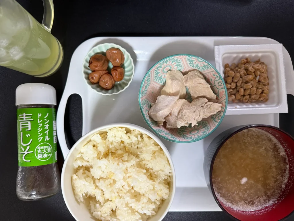 レースが17:55スタートなので、昼食は軽食で済ませることにした。そのため、朝食は1合のお米をメインに摂取