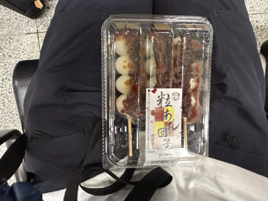 会場に向かう途中に軽食。糖質メインの串団子