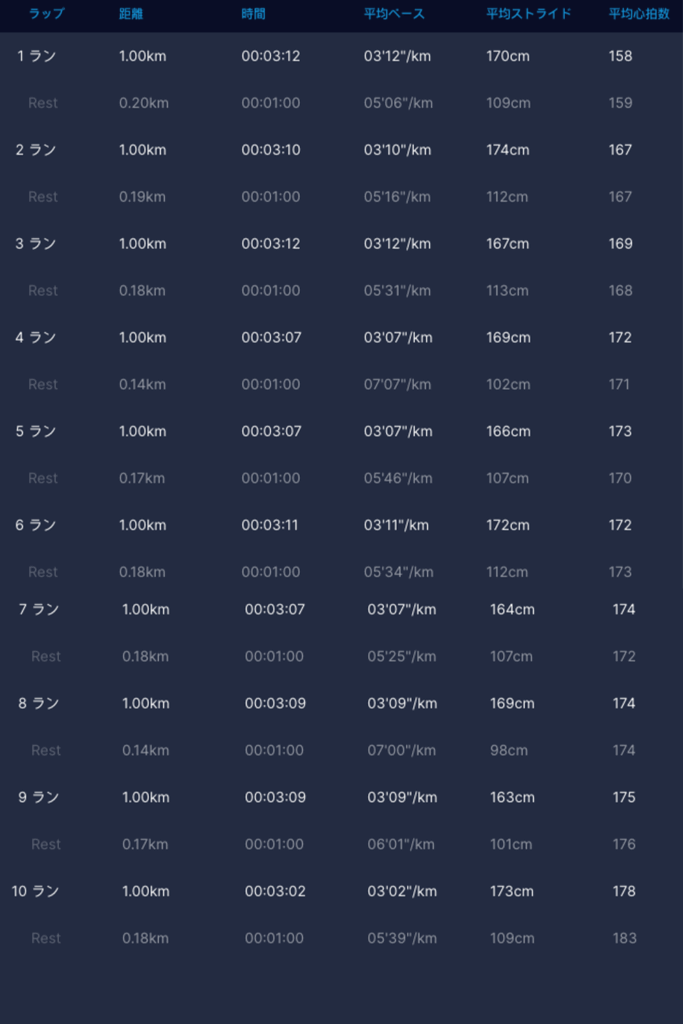 都合により、昼間に実施したこともあり、ペースはイマイチかな。ただ、心拍はいい感じで追い込めているので刺激としては良いのでないだろうか。